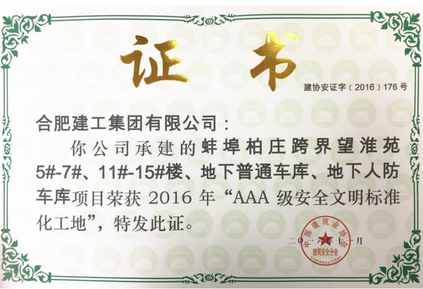2016AAA安全文明標(biāo)準(zhǔn)化工地(蚌埠柏莊跨界望淮苑項(xiàng)目)