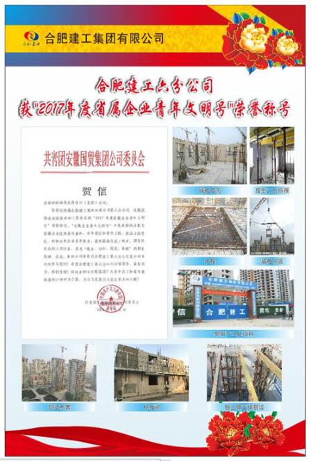 4月11日,從安徽國貿集團傳來喜訊,合肥建工集團有限公司第六分公司,獲得由省國資委團工委命名的“2017年度省屬企業青年文明號”榮譽稱號。