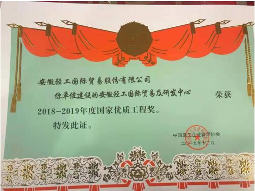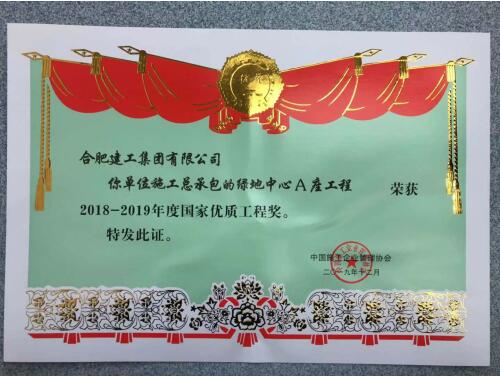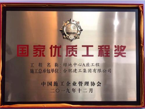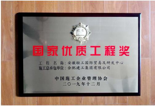 2019年12月7日,國家優質工程總結表彰大會在北京國家會議中心召開,合肥建工集團有限公司承建的安徽輕工國際貿易及研發中心項目、綠地中心A座項目雙雙上榜,這是首次同時領回2018—2019年度兩項國優大獎,是對合肥建工“過程管控鑄精品工程 ,以人為本立百年基業”的管理方針的生動詮釋,也是對合肥建工全體員工辛勤付出的肯定,更是對合肥建工持續打造精品工程的激勵。